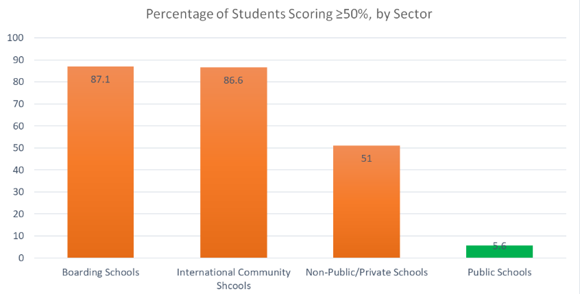 The stark disparities in exam results across Ethiopia’s schooling sectors highlight deep socio-economic inequalities. For instance, this year, 87.1% of students in government-funded boarding schools achieved a passing mark of 50% or above, closely followed by 86.6% of students in international community schools. Private schools ranked third, with just 51.6% of their students passing. Public schools, which educate the vast majority of rural communities and the urban poor, fared far worse, with only 5.6% of students reaching the passing mark.