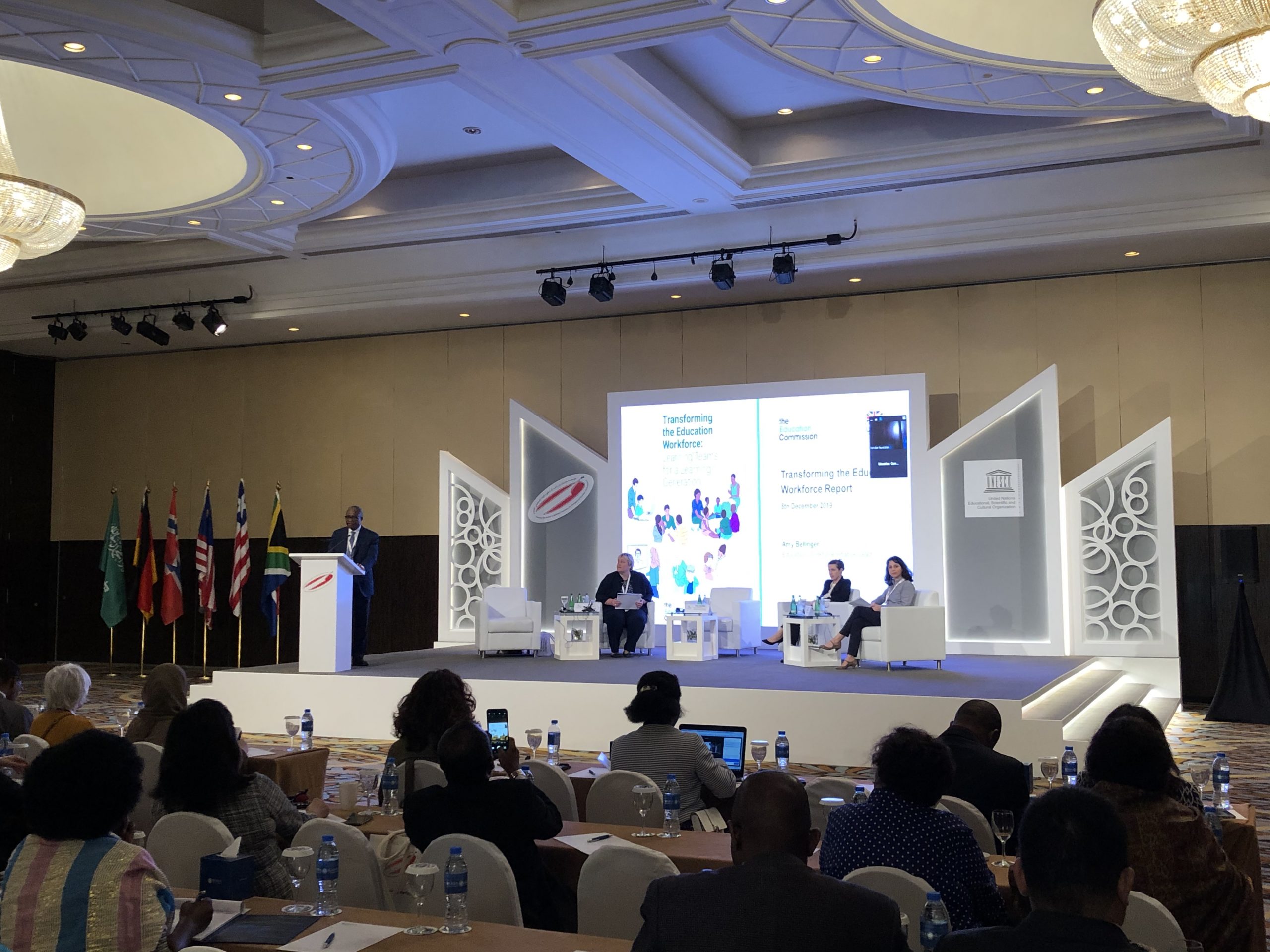 On Day 1, there were two highlight sessions. At the first meeting, Deans and Chairs of UNESCO shared new developments around integration of instructional technology at each of their respective institutions. Increasingly, institutions are adopting blended-models where students engage in online learning communities and attend in-person lectures/sessions with assistance of individual hand-held devices. At the second highlight session, Amy Bellinger (Education Commission) shared details on “Transforming the Education Workforce” Report; Barbara Tournier and Chloe Chimier (UNESCO-IIEP) introduced new work on “Re-imagining Teacher Careers;” Karine Tremblay (OECD) discussed new findings from TALIS 2018. Also notably, an evening-event that was hosted by the ‘Futures of Education‘ project team of UNESCO. Noah Sobe (UNESCO) introduced the Education 2050 consultation plan.