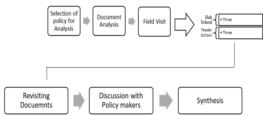 This blog shares the analysis of the 2021 School clustering policy against its intended objectives. To collect data for the analysis, six schools were selected from the three clusters including three hub cells and three feeder schools, as depicted in Figure 1. The analysis process also involved visiting the Reform Support Unit (RSU) and conducting six school visits to three clusters, mainly situated in slum areas: Cluster A, Cluster B, and Cluster C. Interviews were conducted with key stakeholders from RSU and UNICEF, as well as with head teachers from six schools, randomly selected guide teachers, subject teachers, and students. For the policy analysis, an adapted version of Rizvi and Lingard’s policy analysis framework was used.
